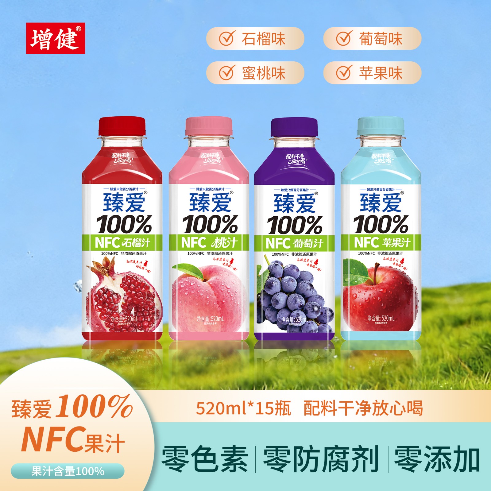520ml 100%NFC果汁 配料干净